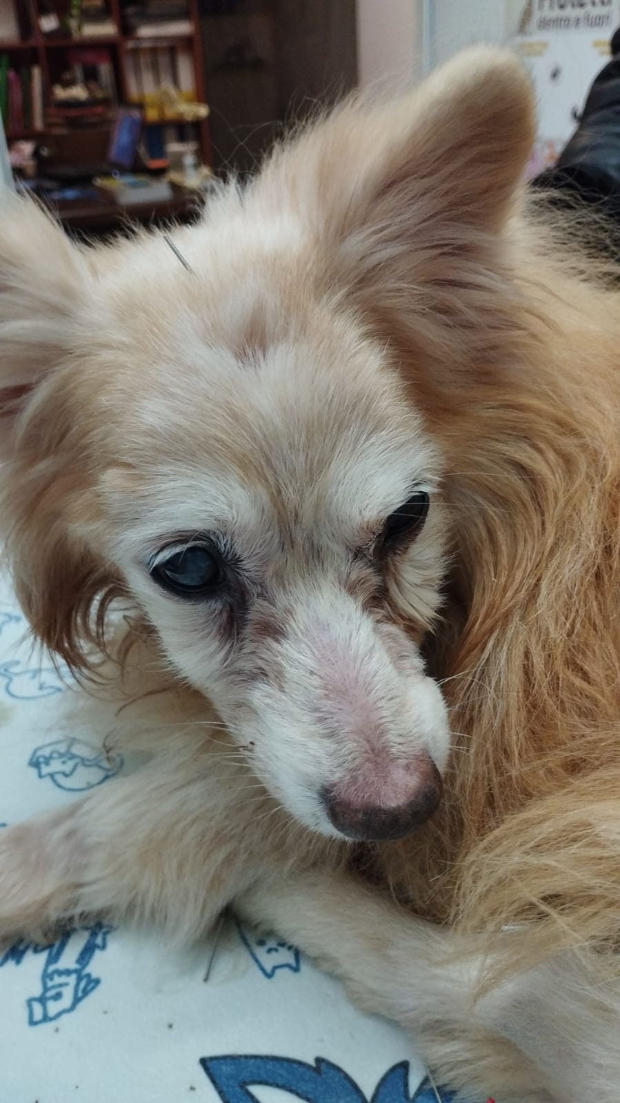 L'amica Caramella è stata portata per una visita a causa di una sindrome vestibolare di origine sconosciuta . Trattata anche per disturbi neurologici e ortopedici del treno posteriore.