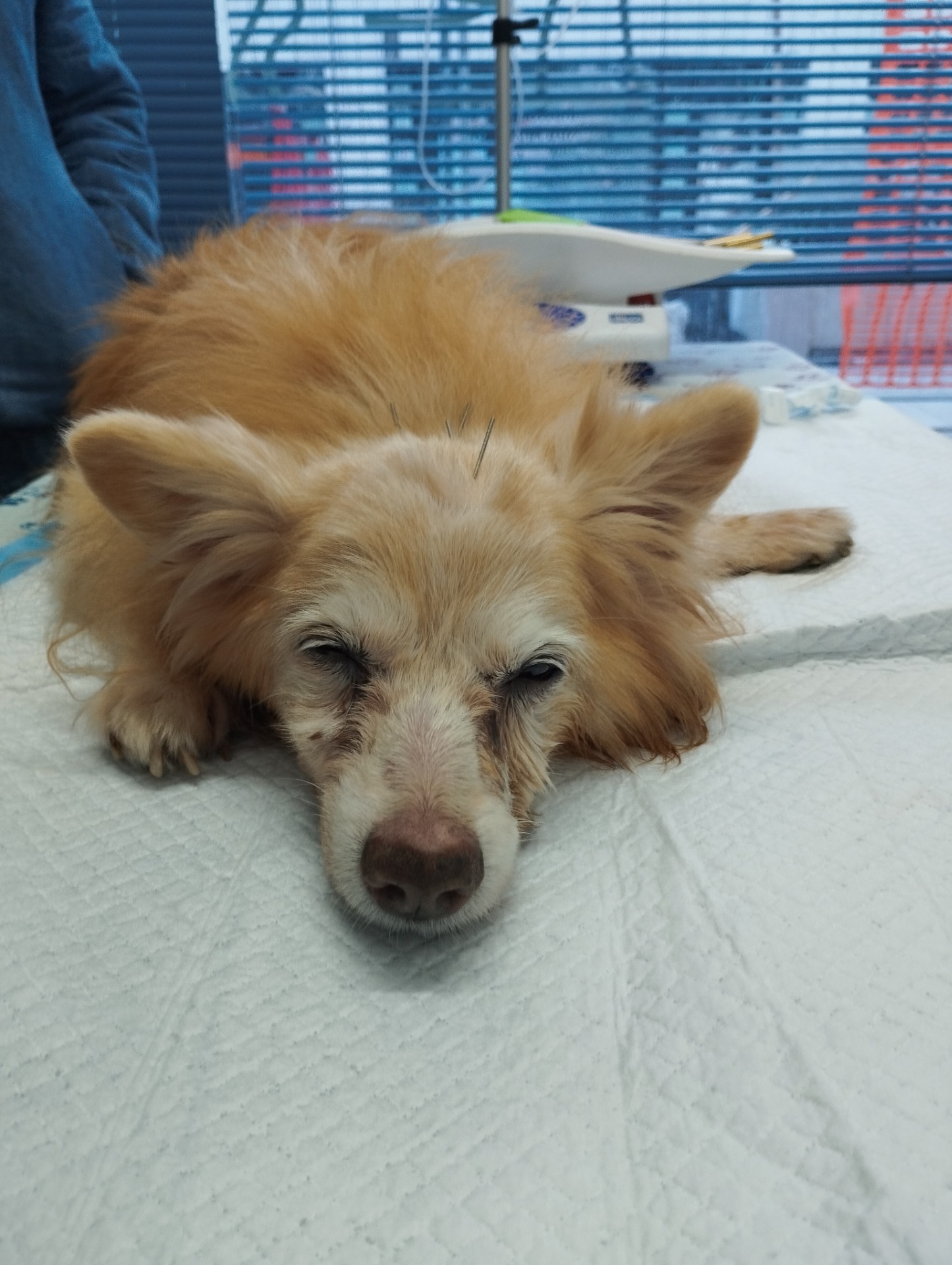 Affetto da disfunzione cognitiva , crisi epilettiche , collasso tracheale , cistite cronica e problemi deambulatori legati alla degenerazione articolare . Vuoto di Yin e di Yang , Bi Syndrome, Vento nel Mare del Midollo , Deficit di Qi .